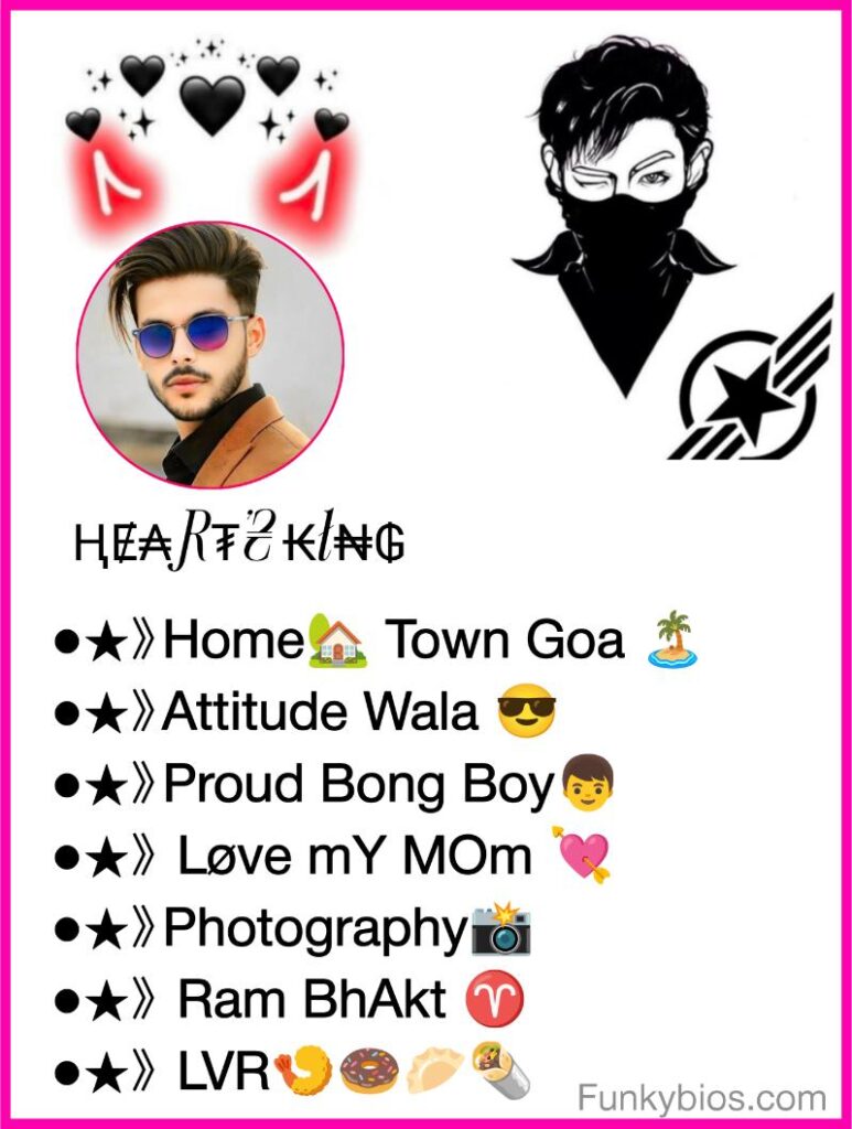 दोस्तों आजकल फेसबुक पर लोग तरह तरह के Bio लगाना पसंद करते हैं ताकि उनका फेसबुक अकाउंट खूबसूरत स्टाइलिश और अट्रैक्टिव दिखे. और कुछ लोग ऐटिटूड वाले होते हैं जो ऐटिटूड बायो लगाना पसंद करते हैं क्या आप भी Attitude के दीवाने है तो आपको फेसबुक प्रोफाइल मे यह Facebook Bio For Boys Attitude जरूर लगाने चाहिए. दोस्तों हमने यहां पर सभी Best Facebook Bio For Boys दिए है अगर आपको इसमें से कोई भी Bio पसंद आये हे तो आप Copy ओर Paste करके अपने फेसबुक प्रोफाइल में लगा सकते हैं.